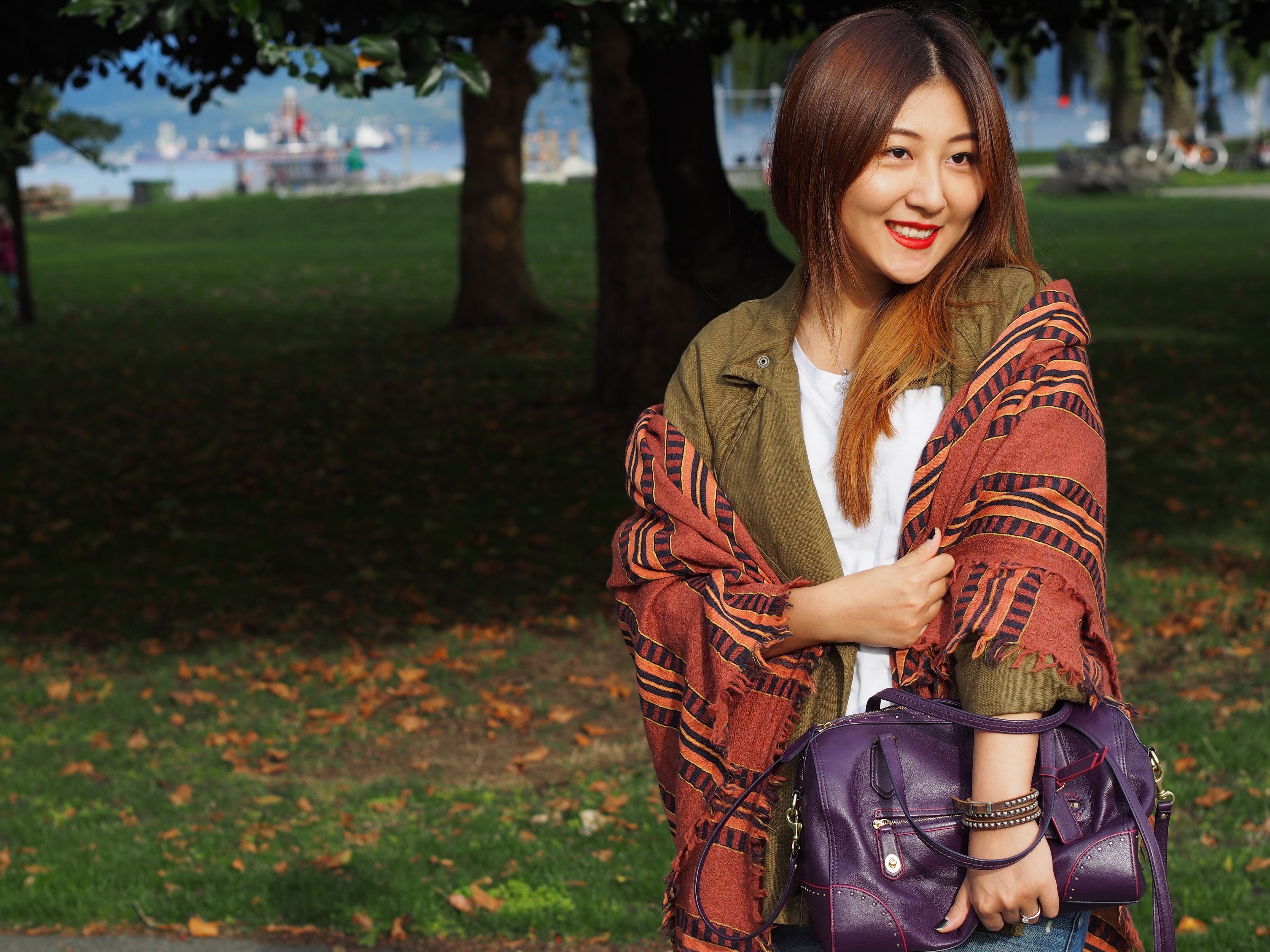It is once again my favorite season! The temperature is getting cooler, we can start having fun with all of our favorite fall accessories – scarves, for instance. A shawl scarf is definitely a good investment for fall this year; it is so versatile that you can wear it around your neck, around your shoulders to keep you warm (especially in Vancouver, you never know when it will start to rain!), or shove it in your bag, leave an edge peaking out from your purse so it adds a bit more color to your outfit. See! Effortless!