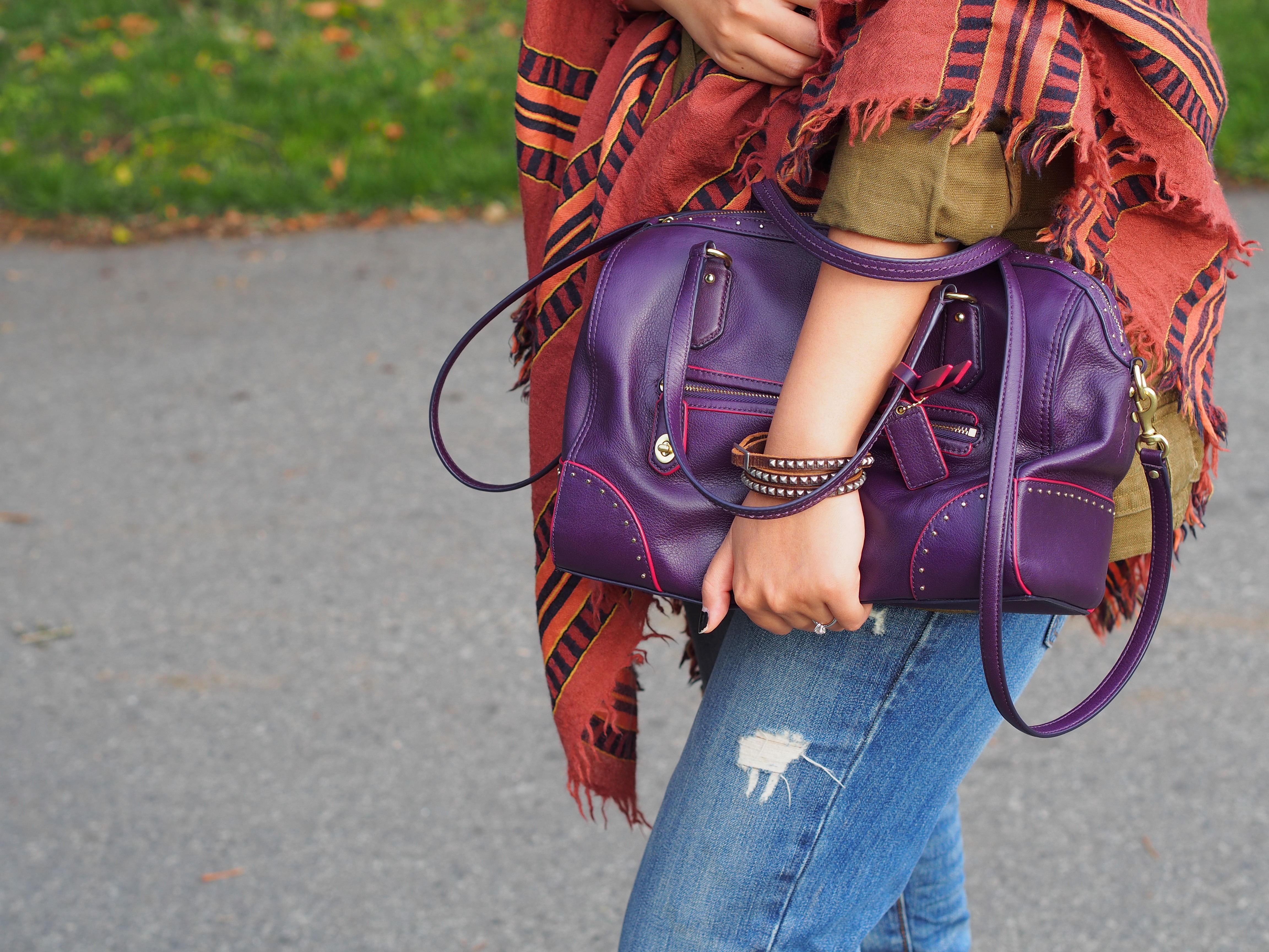 I have been using this purple leather bag so much recently, and I cannot showcase it enough on my instagram. If you are considering purchasing a bag for fall, purple is your go-to color.