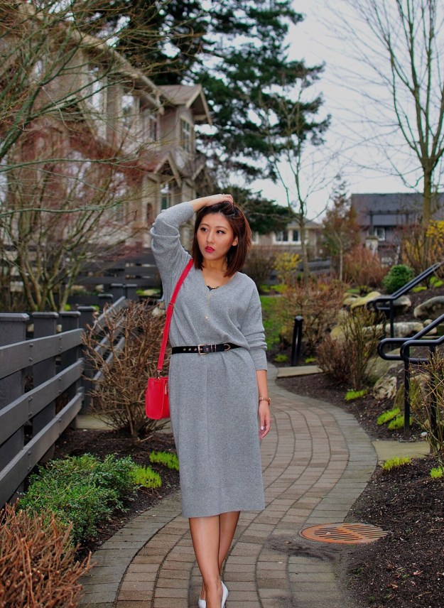 This is not necessarily what I will be wearing for dinner tonight (my husband has been keeping where we will be going a secret, so I am still deciding on what to wear)! I put this outfit together because I have been wanting to try matching grey with red.