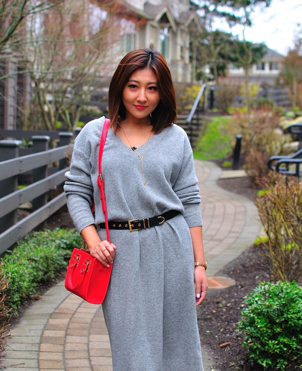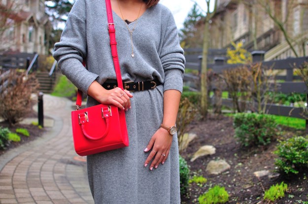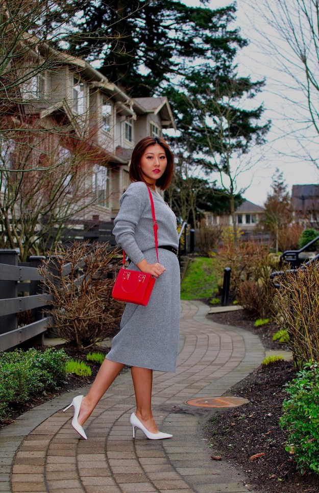 So, I thought this could be good to wear during the day on Valentine’s Day, since February is still cold in ‘Raincouver’. I also thought I’d accesorize with a splash of red (see my handbag). Remember: you can stay warm and comfortable – I am all about staying warm in the winter – while being appropriately fashionable on Valentine’s Day.
